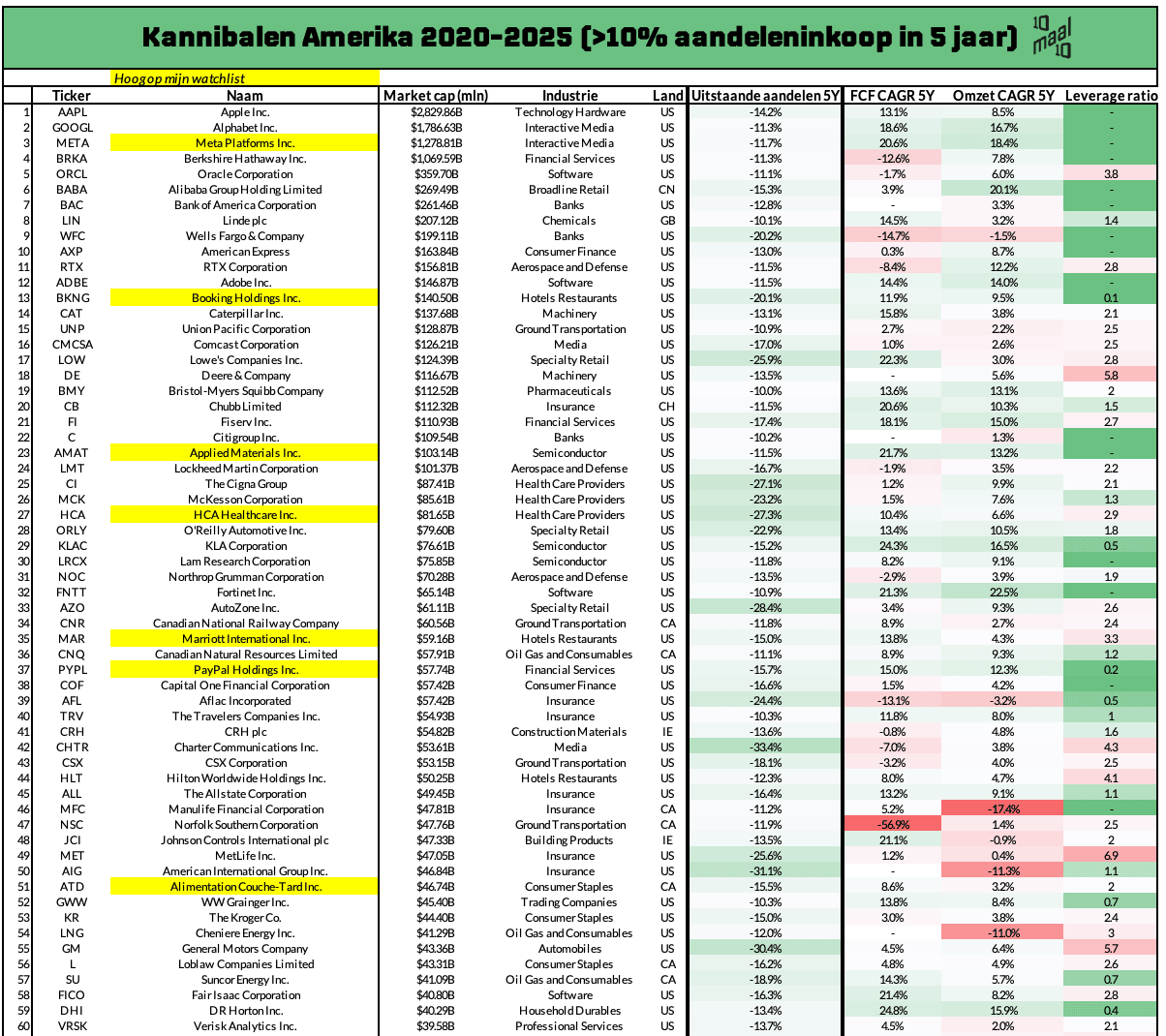 Vul je gegevens in, en we zenden de lijst met de bedrijvendie het meeste eigen aandelen inkopen, op.